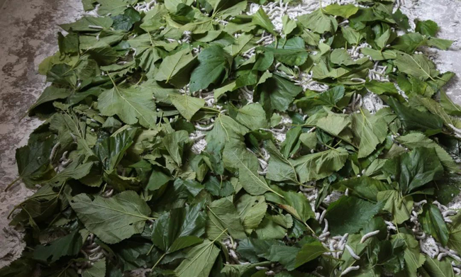 农户养殖的蚕宝宝