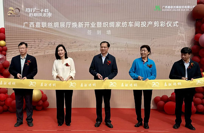 11月18日,广西嘉联股份有限公司织绸家纺车间投产暨丝绸展厅焕新开业剪彩仪式在宜州区举行,副区长卢炳胜参加仪式并致辞。
