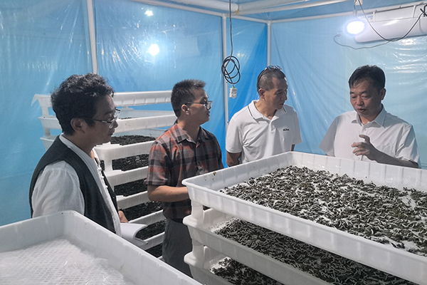 服务组先后调研了横州市桂华丝绸有限公司、宾阳县邕州蚕种有限公司、露圩镇桂春桑蚕专业合作社、忻城县蚕桑产业园安东基地、芯茧源人工饲料养蚕基地、忻城茧丝绸产业园、柳城县冲脉镇春绿桑蚕专业合作社及双秀家庭农场等一线生产单位。针对调研中发现的桑叶富余、农户养蚕意愿高等情况,服务组现场提出技术建议:指导蚕农加强蚕房通风降温以应对高温天气,并对富余桑叶的桑园实施适时夏伐,优化桑树营养分配,为下一季养蚕储备优质桑叶资源。