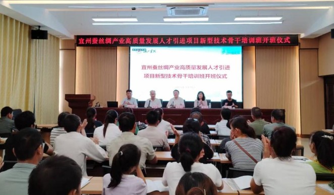 7月25日,宜州蚕丝绸产业高质量发展人才引进项目新型技术骨干培训班在河池学院格致楼102会议室开班。宜州区科学技术局副局长韦孟威,河池学院化学与生物工程学院院长、广西桑蚕生态学与智能化技术应用重点实验室主任李晓东教授,以及来自德胜、洛东、洛西、石别和安马等乡镇50余名桑蚕技术骨干参加开班仪式。开班仪式由河池学院化学与生物工程学院覃玥教授主持。