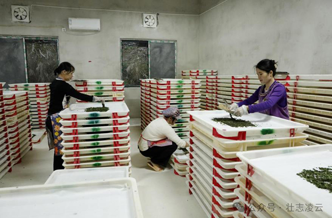 春暖桑芽绿,共育蚕事忙。在凌云县下甲镇加西村,标准化小蚕共育室内暖意融融,蚕虫啃食桑叶的沙沙声汇成一首产业富民的交响曲。