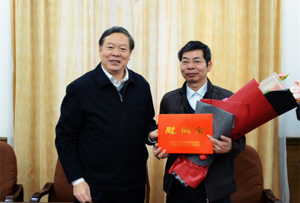 1月19日,在新春佳节来临之际,自治区副主席张秀隆到广西蚕业技术推广总站看望慰问自治区优秀专家闭立辉研究员,代表自治区人民政府感谢闭立辉研究员为广西蚕桑产业发展所做出的突出贡献,并向他致以亲切的慰问和新春的祝福。