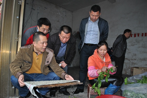 图为专家组在瑶寨村大寨屯农户家中察看瑶蚕饲养情况