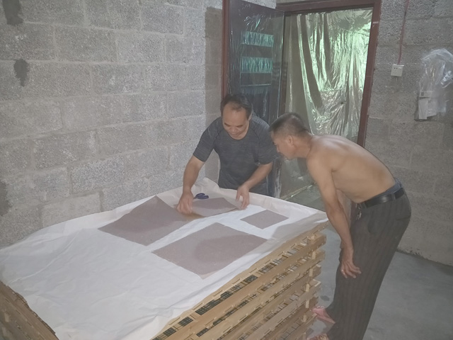 连日来,天峨县农业局蚕业站技术人员到纳直乡当里村指导小蚕共育户对蚕房进行消毒,落实共育的各项准备工作。