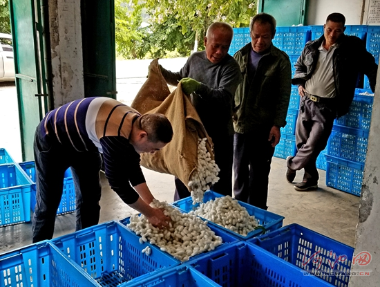 环江南大门合作社负责人韦朝东介绍说:“合作社去年才有58户群众加入,尝到甜头后加入合作社的群众今年增加到104户,其中贫困户有34户,全年产茧30万斤左右,产值达700万余元,合作社成员还可以享受5万余元的分红,同时给予一定的物资奖励。”