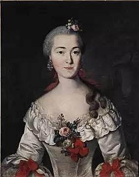 俄罗斯画家绘于18世纪的人物肖像,身着棱纹丝绸衣服。
