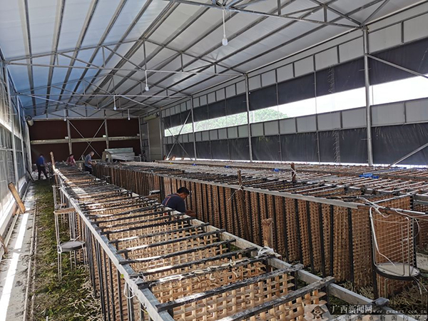 扶贫桑蚕产业园正忙蚕“上树”。韦艳 摄
